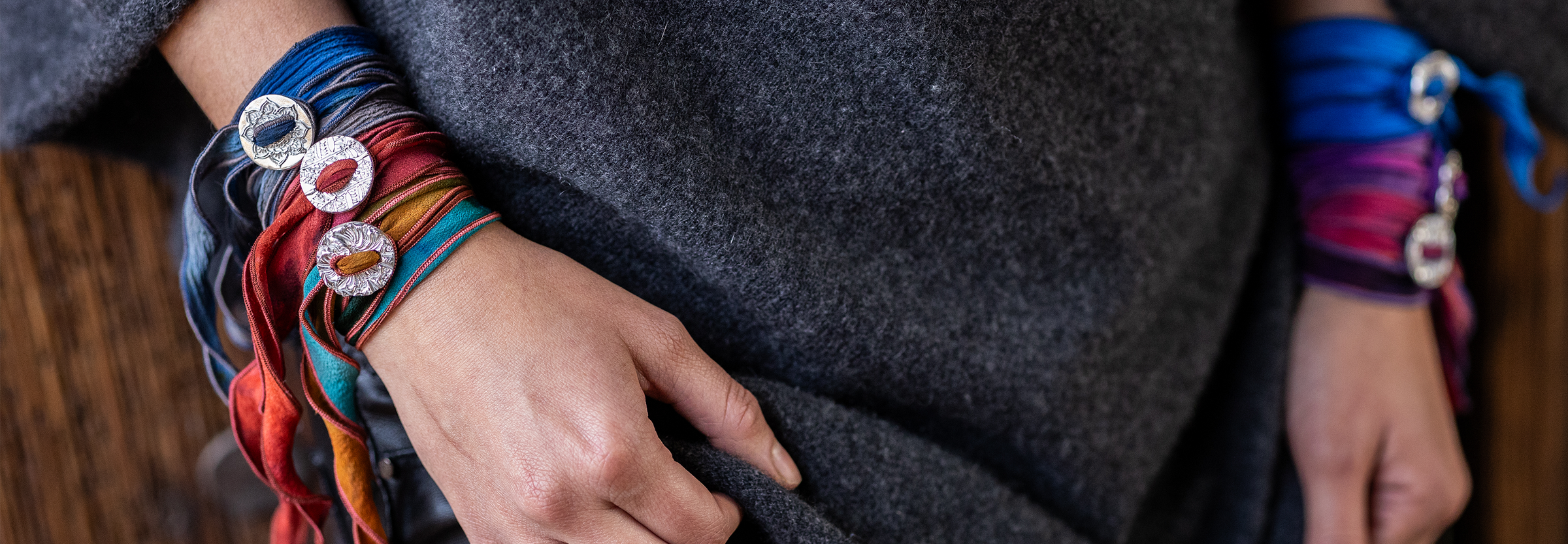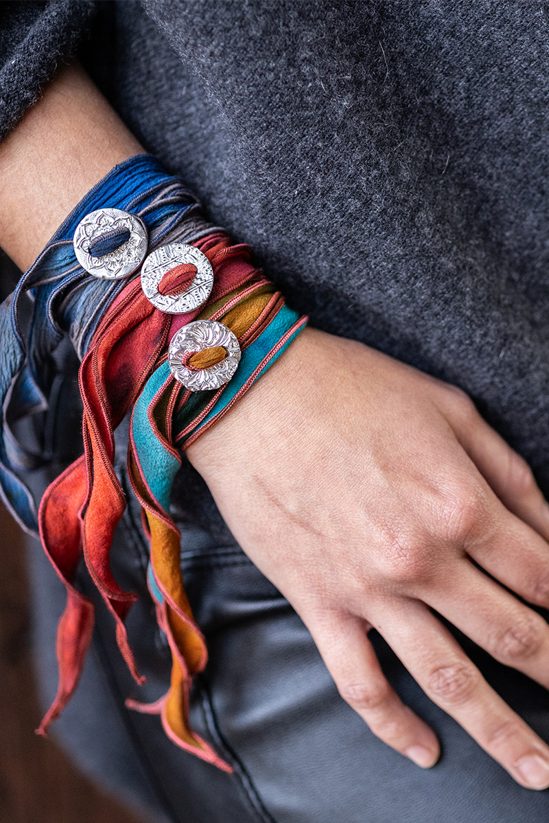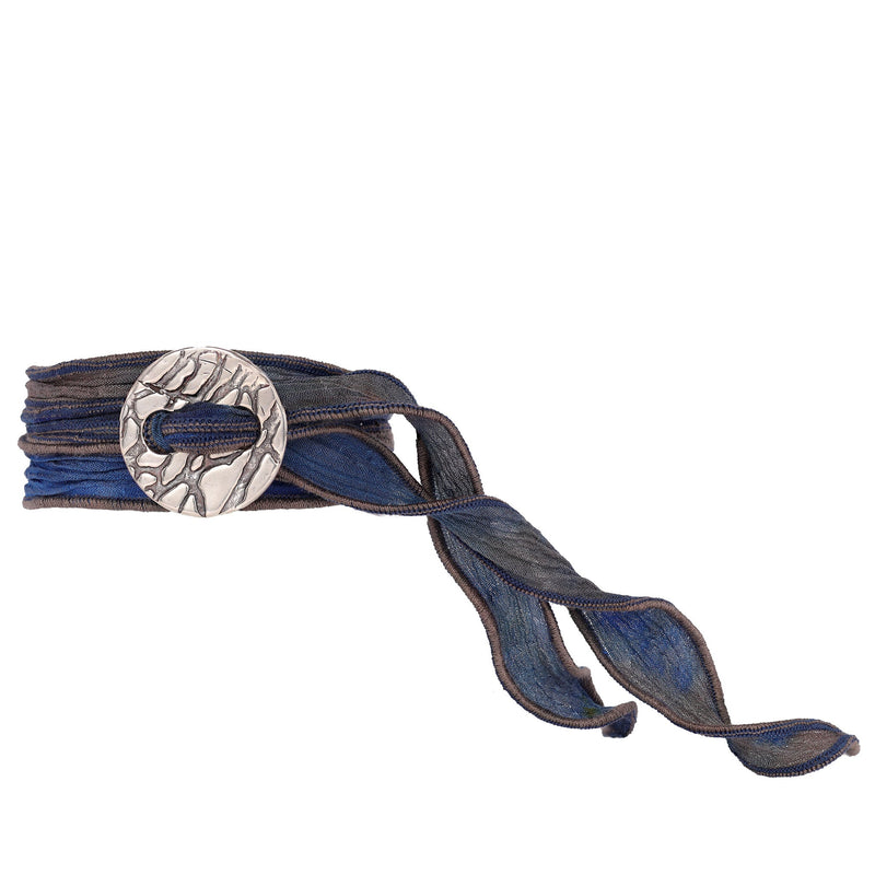 Cactus Skeleton Textured Sterling Silver Silk Wrist Wrap Bracelet
