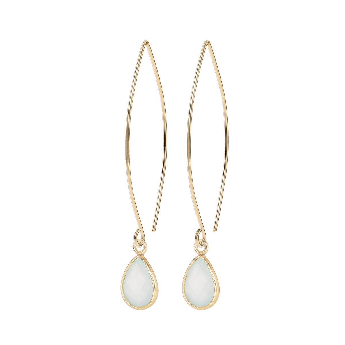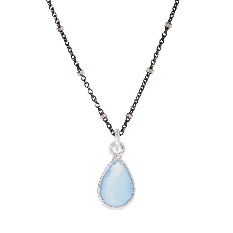 Oxidized Sterling Silver Chain with Teardrop Blue Chalcedony in Sterling Silver Bezel