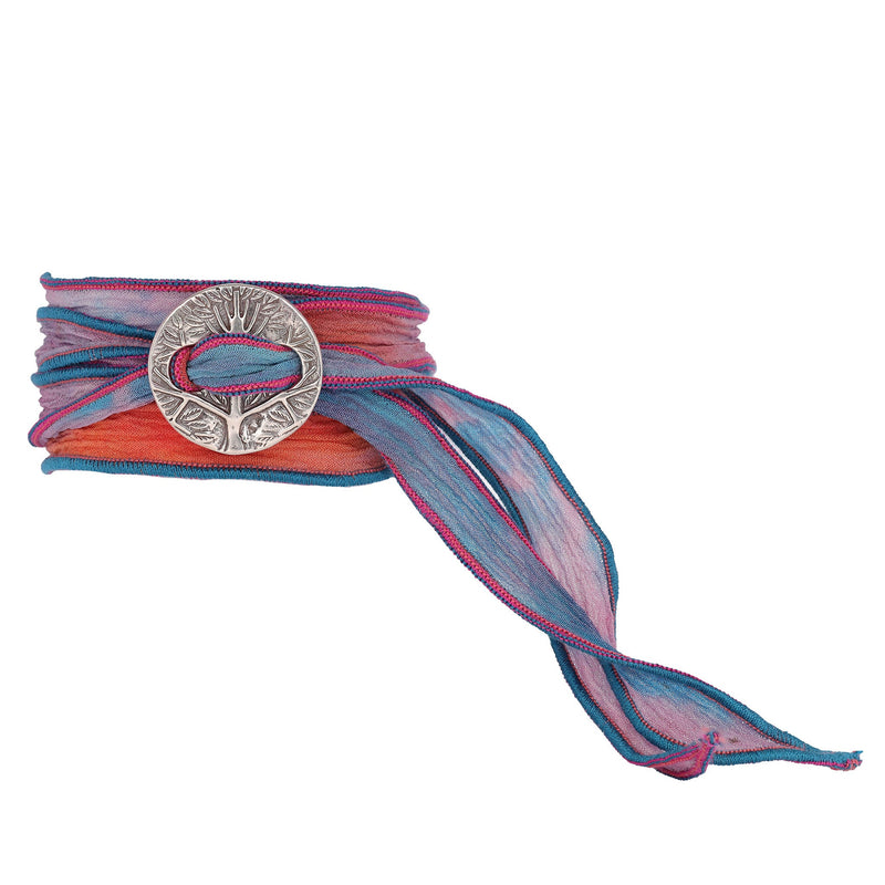 Tree of Life Textured Sterling Silver Silk Wrist Wrap Bracelet